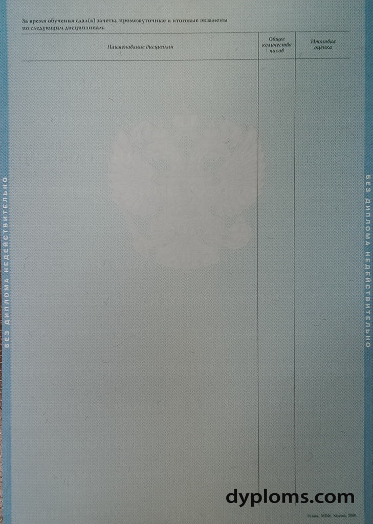 - Диплом актуального образца с официальными государственными символами и защитными элементами.